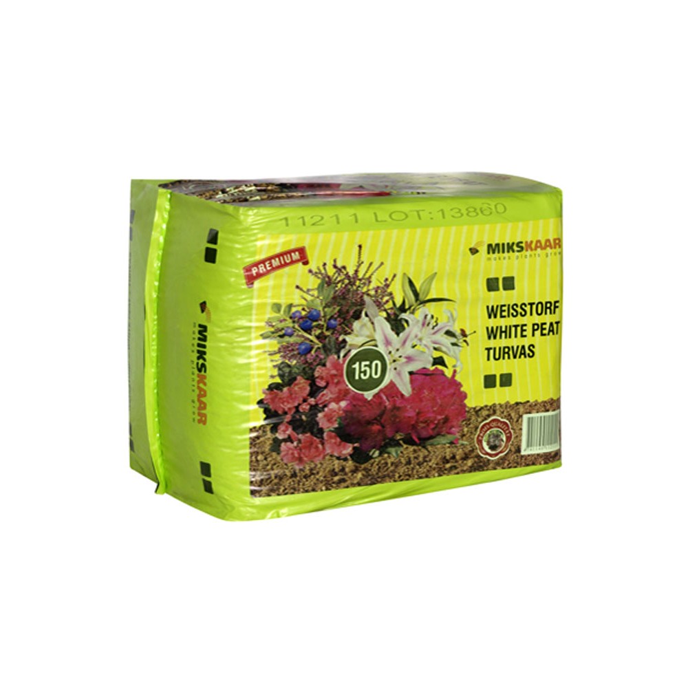 La turba natural para el uso casero está en bala comprimida 50 o 150L. La turba blanca natural se puede utilizar para el crecimiento de rododendros, arándanos y otras plantas, como materia prima para sus propios medios de cultivo, para la mejora del suelo.
